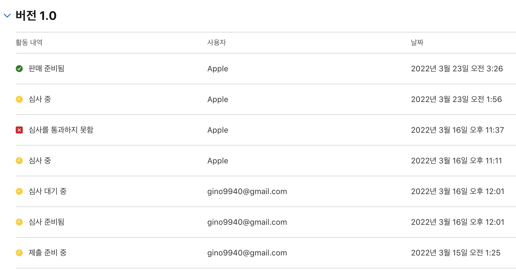 다른 사람들은 심사에 막 1주일 걸리고 3~4번 리젝 먹는다는데 어찌된 일인지 단번에 통과했다. 아쉽게도 이력서에는 배포 중이라고 적었지만 만약 서류에 통과한다면 자신있게 App Store에서 배포 중이라고 말할 수 있게 되었다.